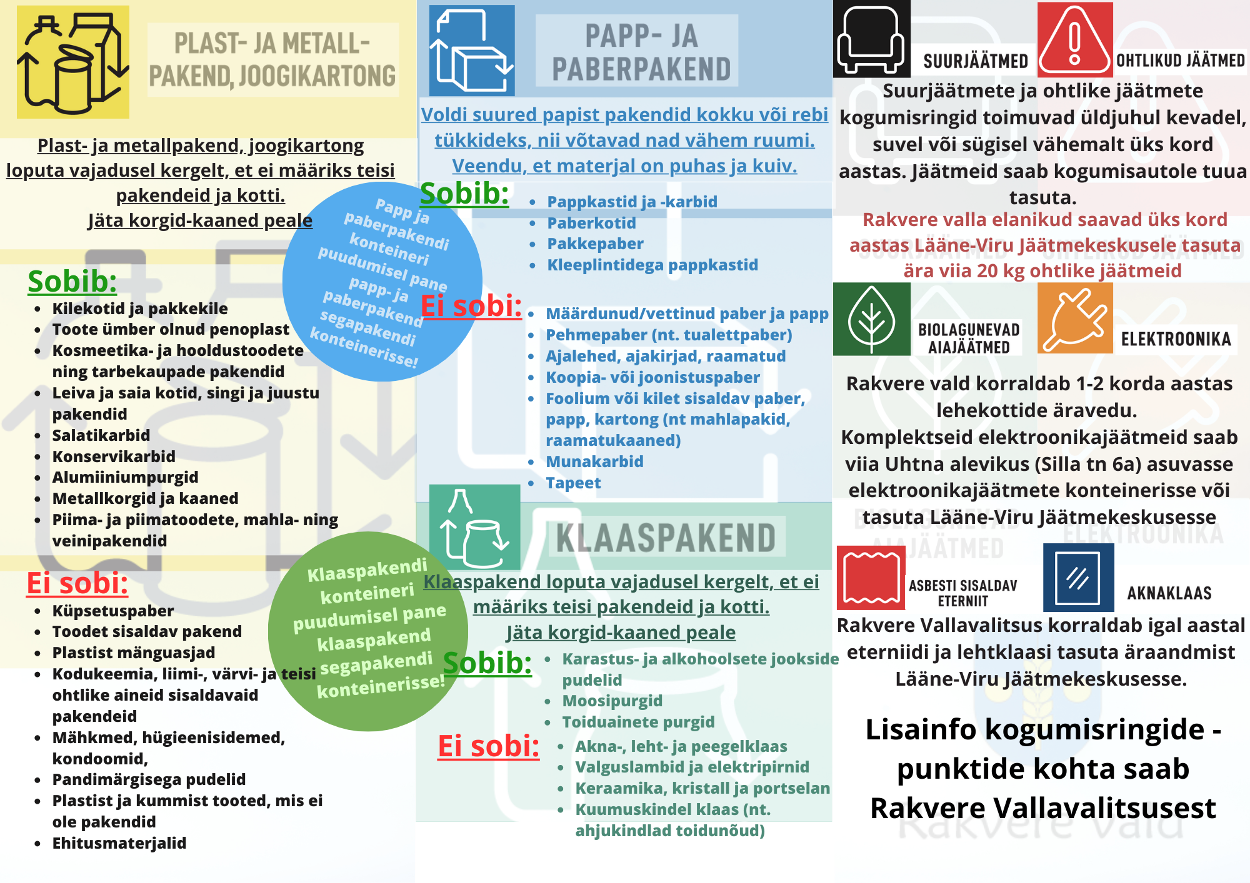 Iga hoonestatud kinnistu peab olema varustatud segaolmejäätmete kogumismahutiga. Segaolmejäätmete mahutisse on keelatud panna taaskasutatavaid jäätmeid, mille liigiti kogumine on korraldatud vastavalt Rakvere valla jäätmehoolduseeskirja nõuetele.