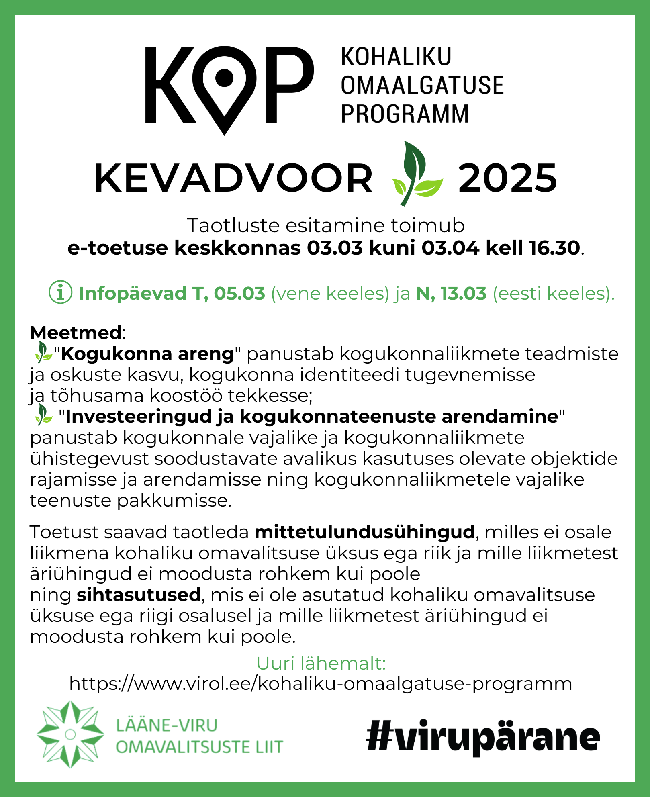 Lääne-Virumaa KOP kevadvoor 2025 "Investeeringud ja kogukonnateenuste arendamine"
