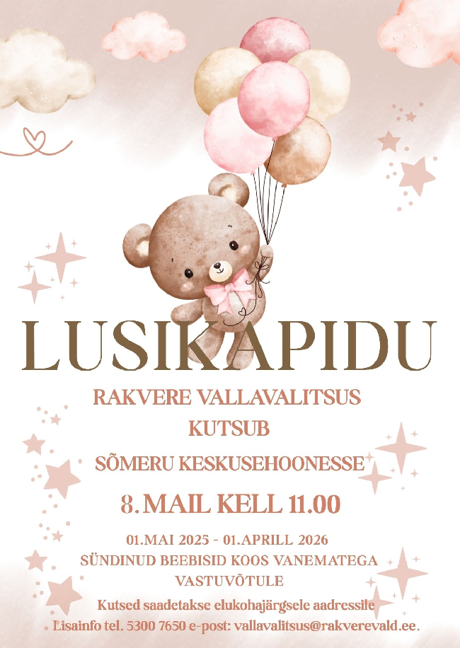 Hea Rakvere valla pere! 8. mail kell 11.00 ootame uute vallakodanike vastuvõtule koos vanematega kõiki beebisid, kes on sündinud ajavahemikus 1. mai 2025 kuni 1....