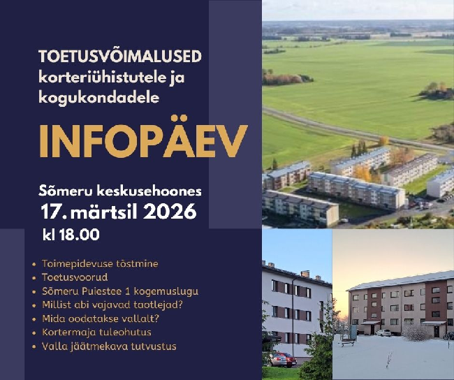 Tuletame meelde, et 𝐡𝐚𝐣𝐚𝐚𝐬𝐮𝐬𝐭𝐮𝐬𝐞 𝐩𝐫𝐨𝐠𝐫𝐚𝐦𝐦𝐢 toetuse taotlusi võtame vallavalitsuses vastu kuni 2. aprillini 2026. Toetatavad valdkonnad: veevarustussüsteemid ...