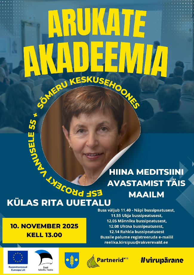 Kord kuus igal teisel esmaspäeval toimuvad Sõmeru keskusehoones Arukate Akadeemia loengud. Järgmisel korral, 8. detsembril 2025 ootame külla tuntud näitlejat ja lavastajat Andrus Vaarikut. ...