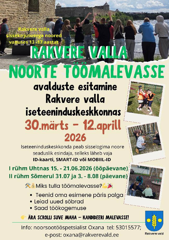 Ahoi, 13-17-aastased Rakvere valla sissekirjutusega noored! Tahad, et suvi oleks tegus, põnev ja annaks eluks kogemusi juurde? Soovid töötada, uusi sõpru leida, osaleda...