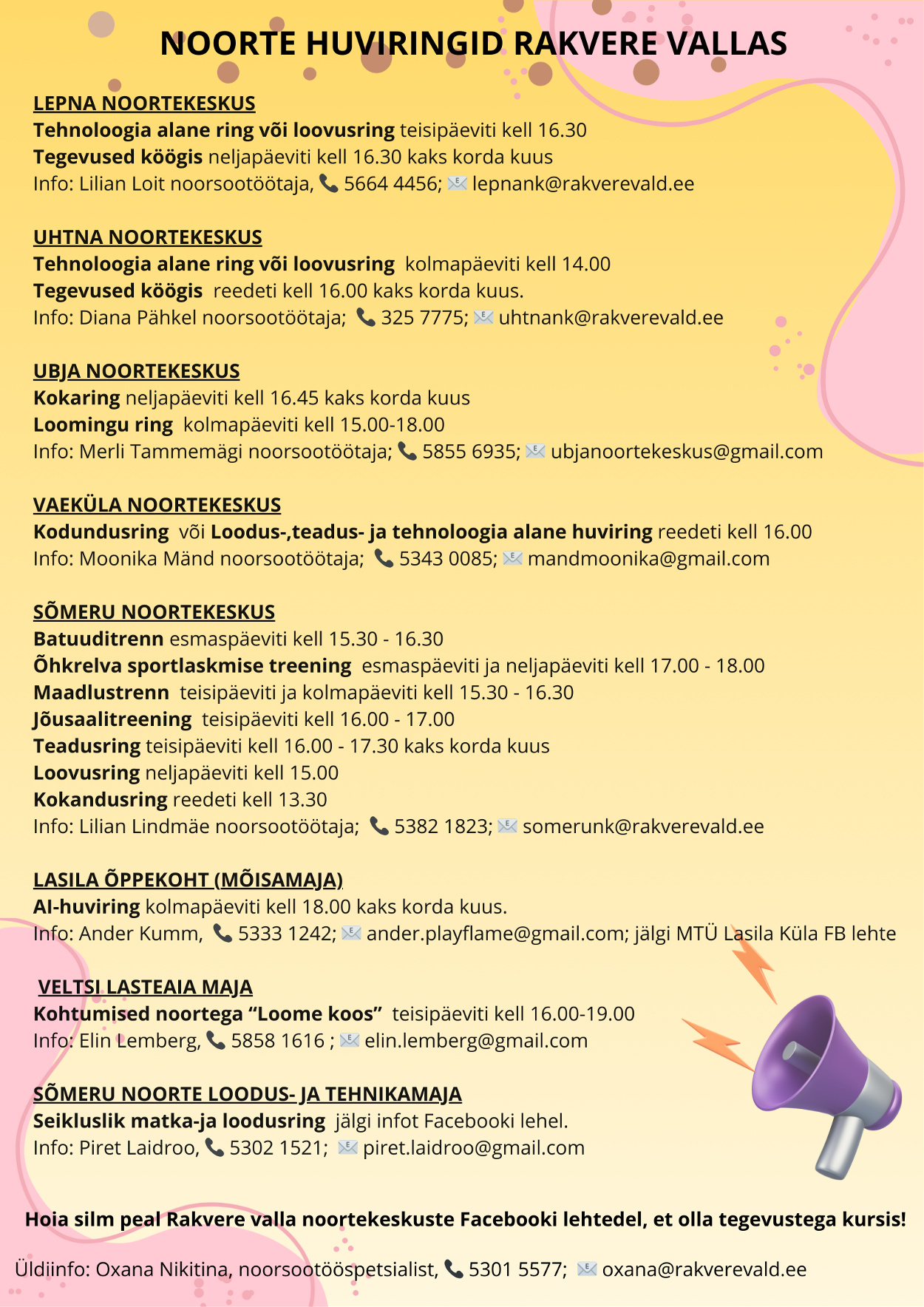 Noortekeskuste kontaktid